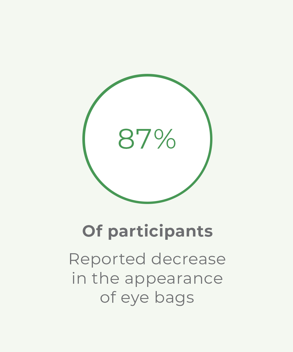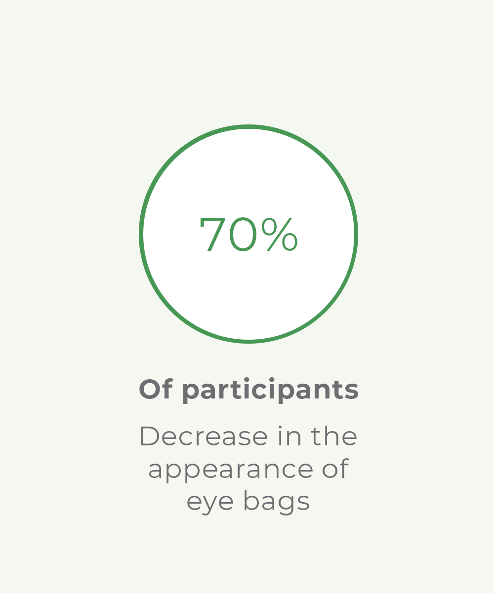Mejora temporalmente las bolsas hinchadas debajo de los ojos en un 27 % en el 80 % de los sujetos evaluados*