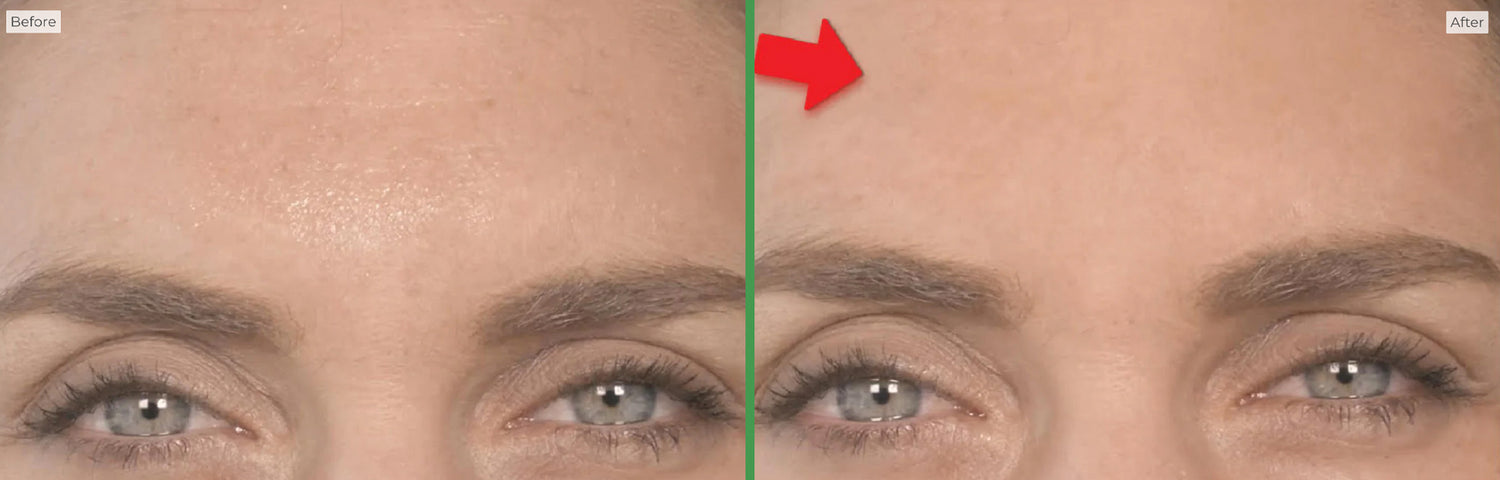Grande melhoria para quase eliminação de linhas e rugas ao redor dos olhos e na testa.